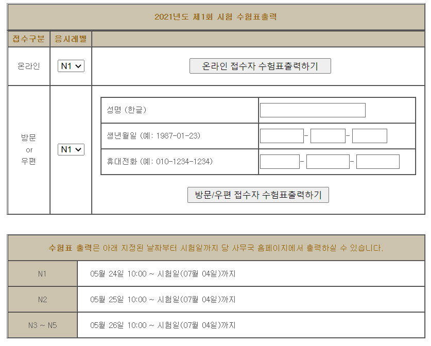각 레벨별로 시험이 이뤄지는 시간이 다르니 하단 시간표를 참고해주세요. N3 ~ N5는 1교시 시험 중 중간에 5분 쉬는 시간이 있습니다.