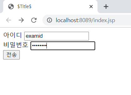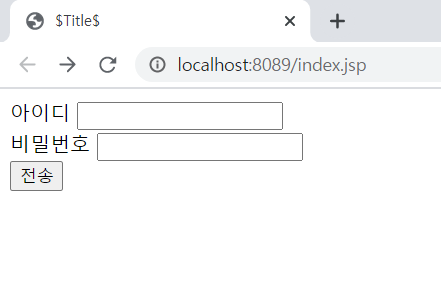 크롬으로 확인해보면 아이디와 비밀번호 입력창, 전송 버튼이 생긴 것을 볼 수 있습니다.