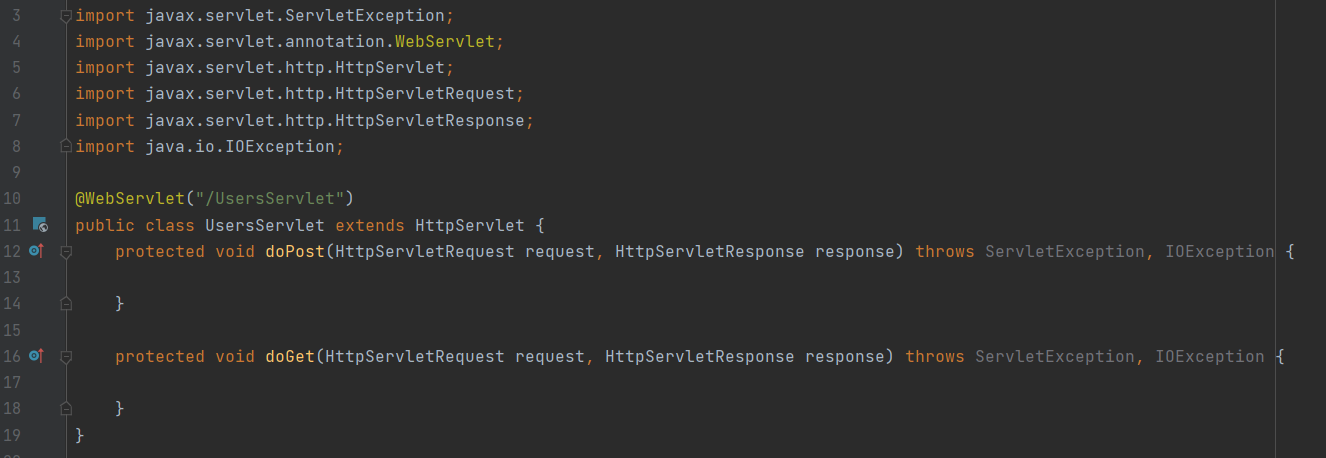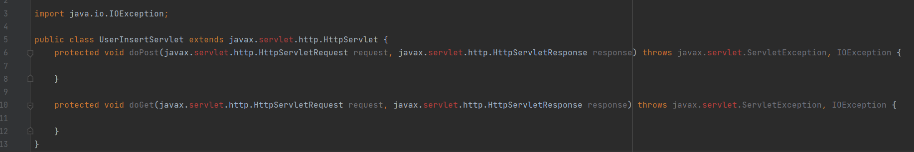 하지만 위 서블릿의 경우 서블릿에 필요한 패키지가 전부 import 되어 있지 않기 때문에 모듈을 추가하고